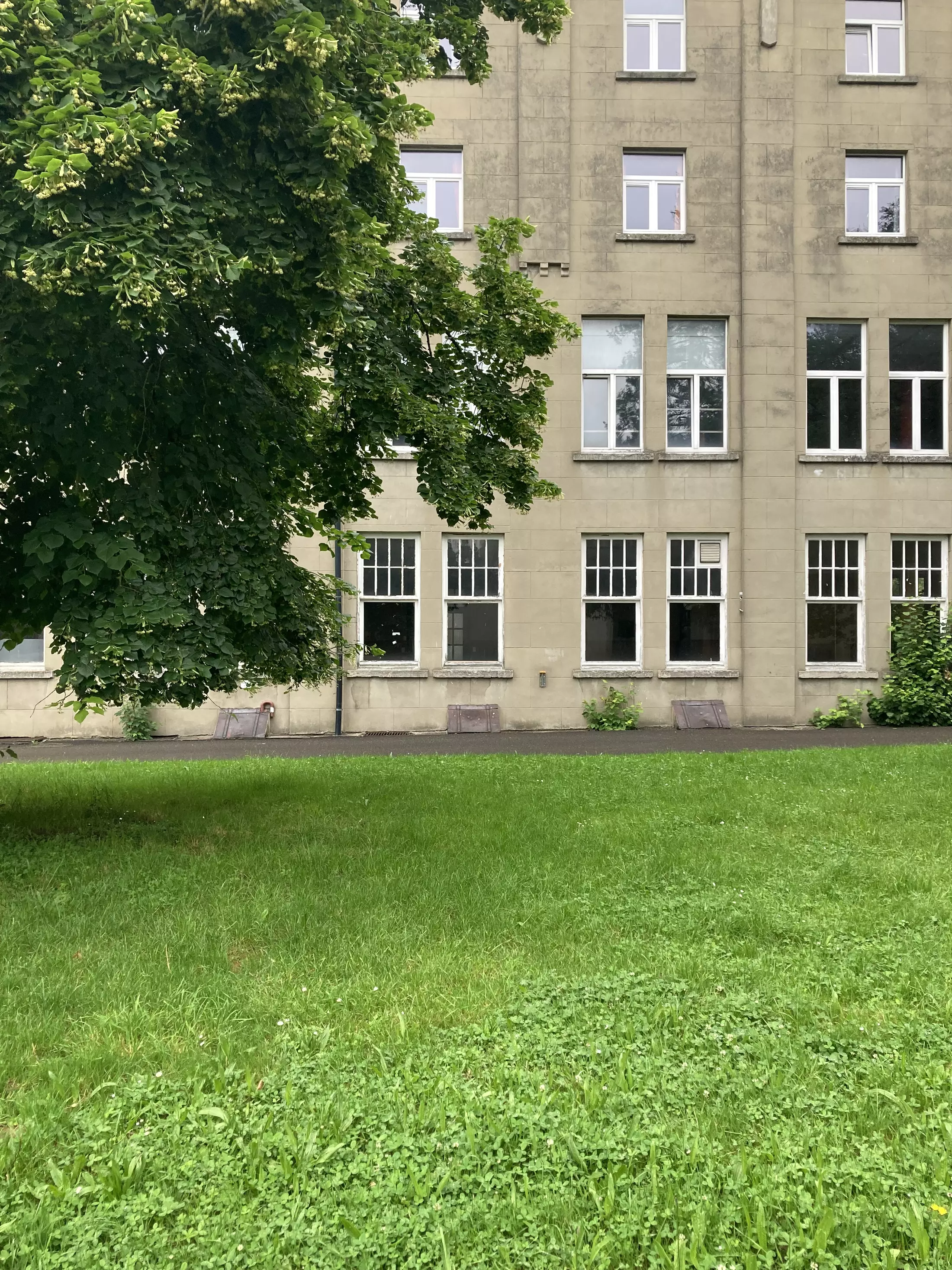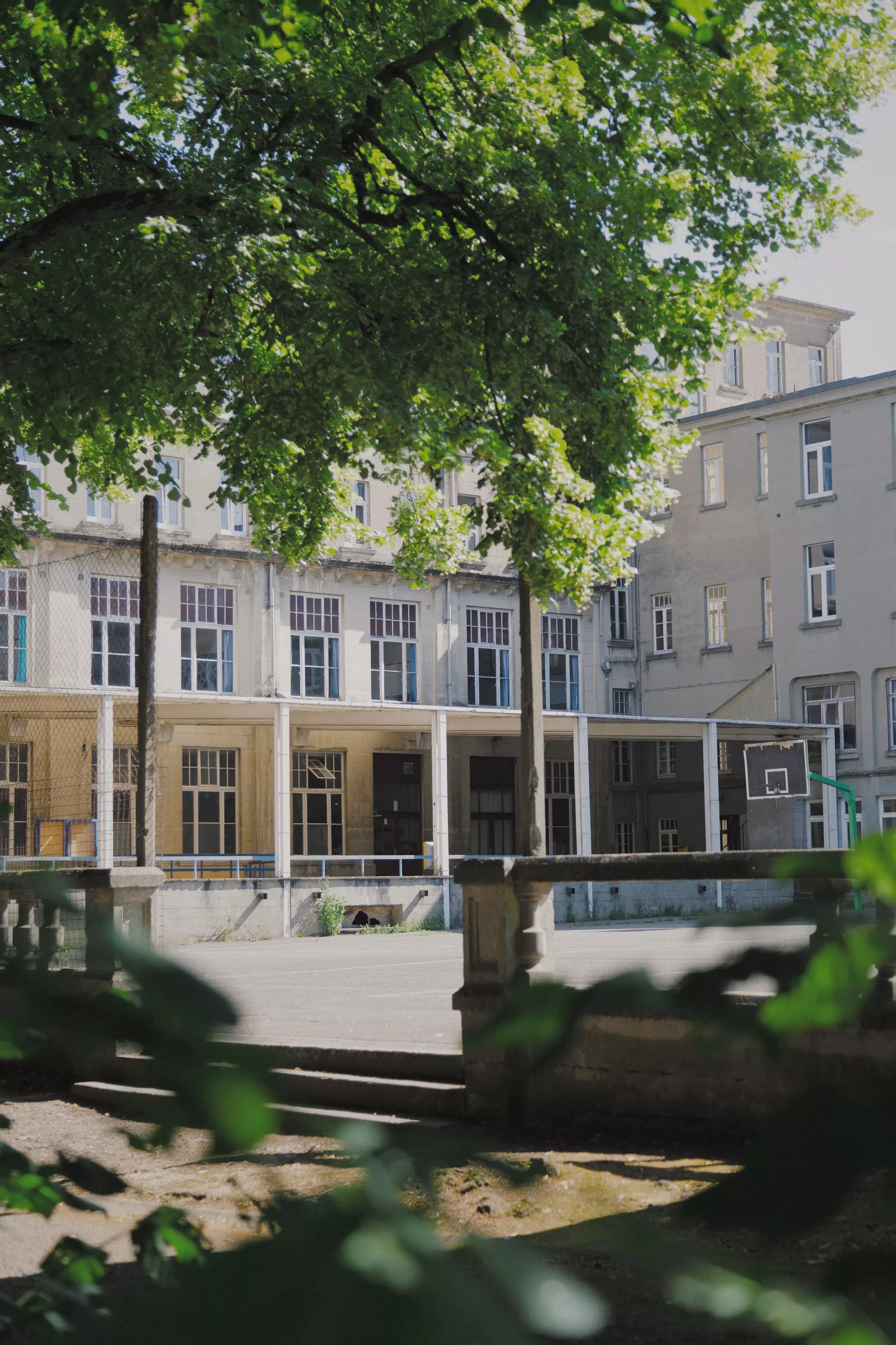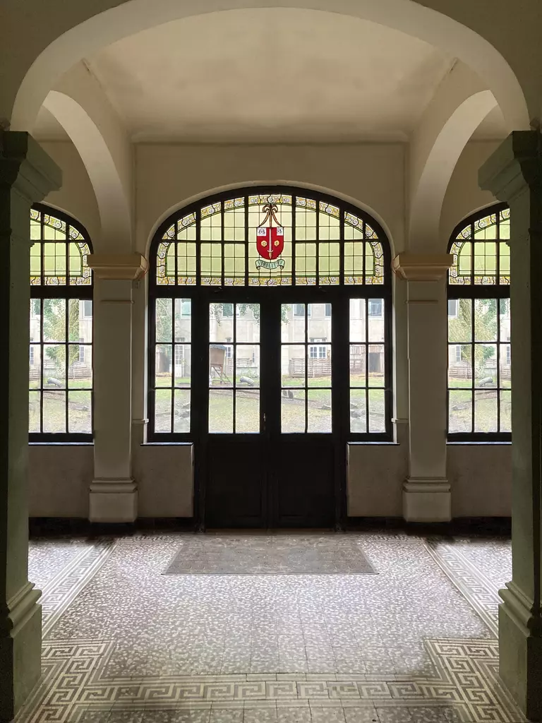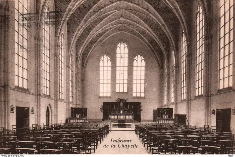Built over a century ago, the Godinne complex is a boarding school inspired by the style of English colleges. It represents one of the earliest examples of concrete construction in Belgium. While the overall structure is characterized by its austerity, the original wooden window frames provide a contrast through their fine woodwork.