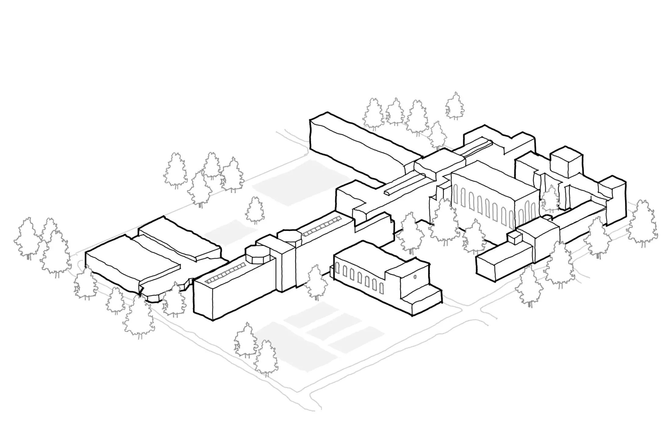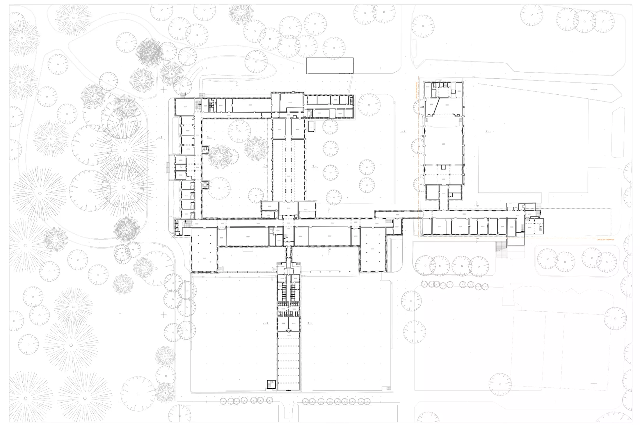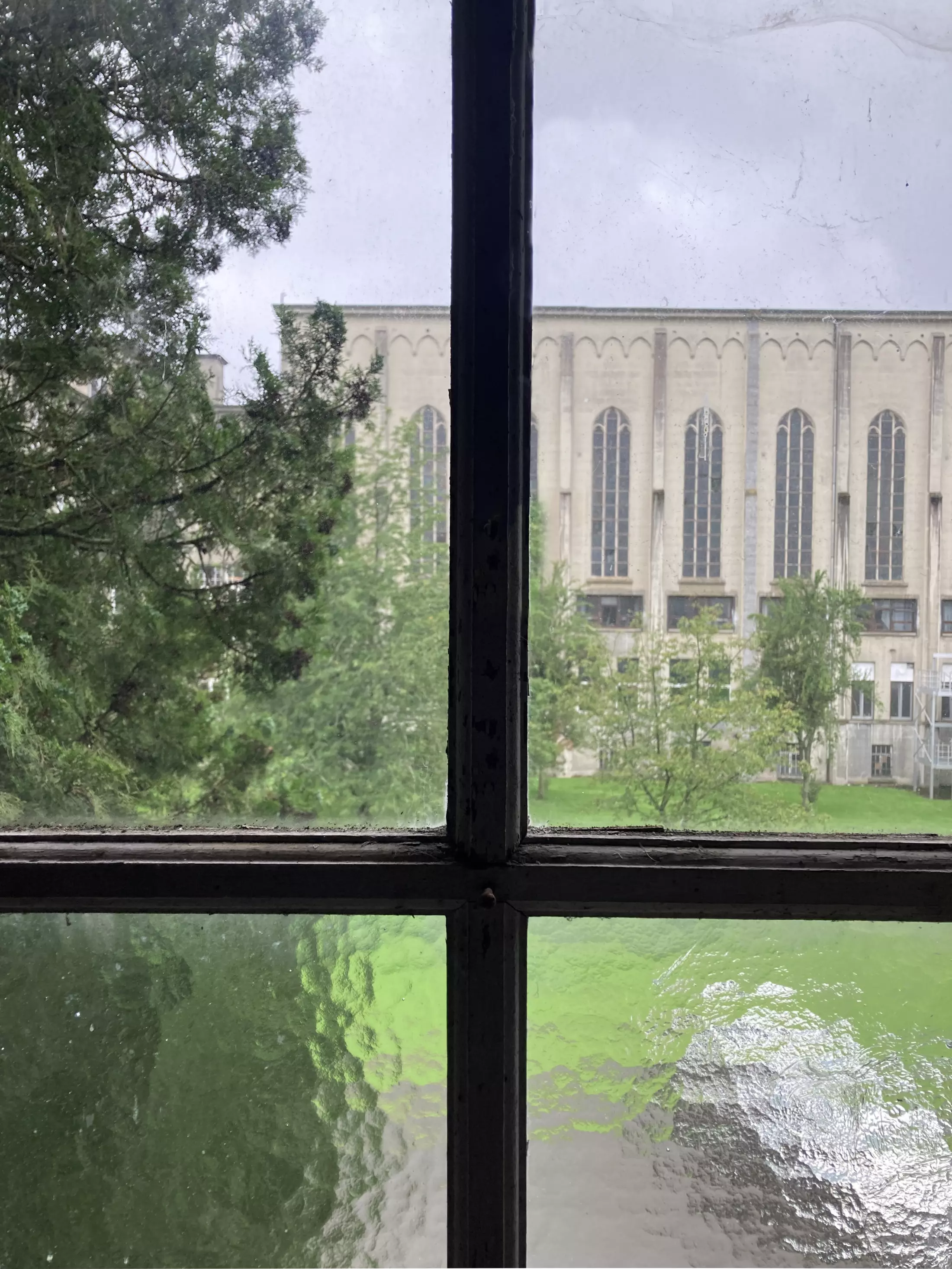 Built over a century ago, the Godinne complex is a boarding school inspired by the style of English colleges. It represents one of the earliest examples of concrete construction in Belgium. While the overall structure is characterized by its austerity, the original wooden window frames provide a contrast through their fine woodwork.