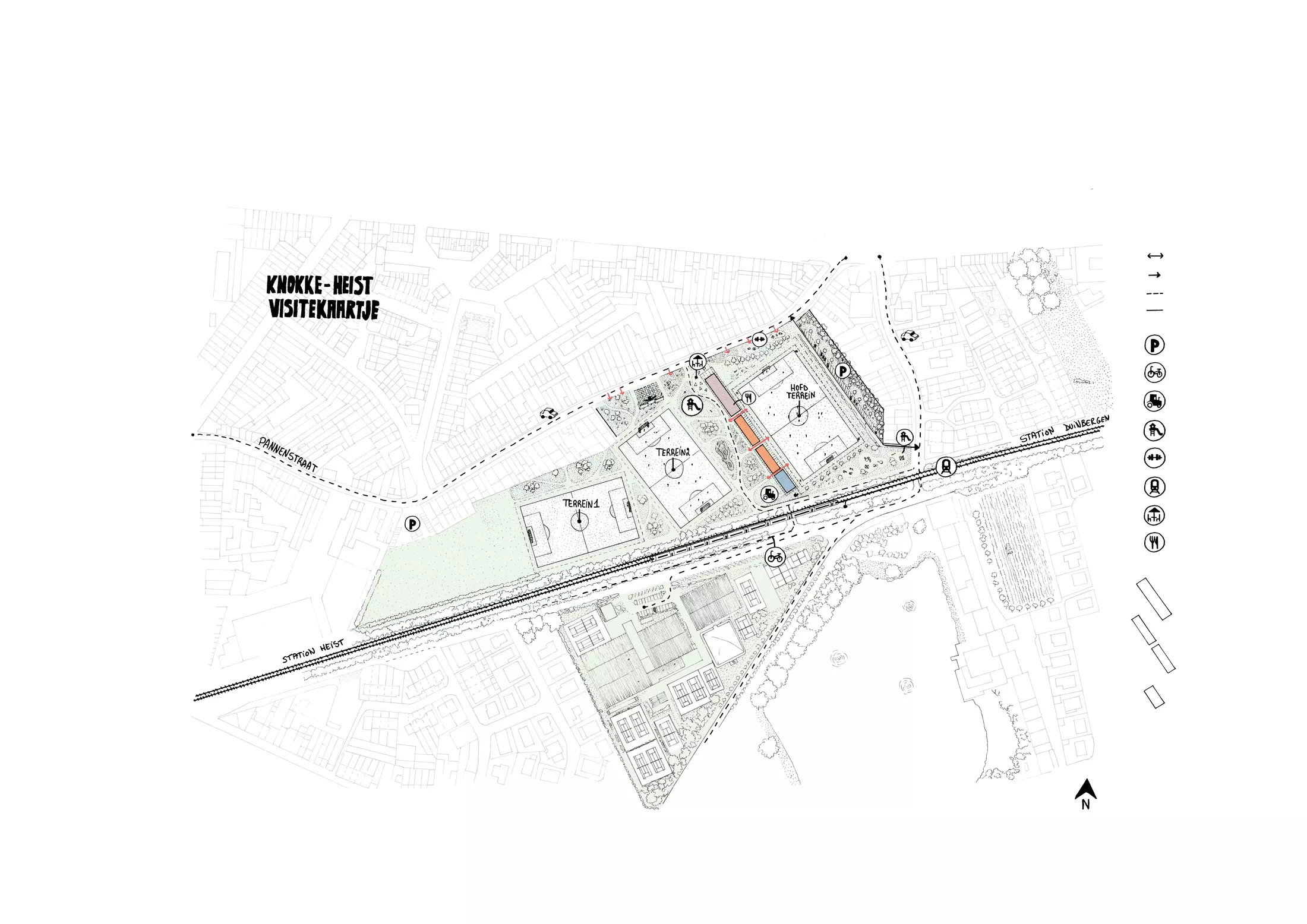 The redevelopment of the Heist sports site transforms the existing fragmented facilities into a unified, climate-resilient sport park by integrating Stadion De Taeye, Sportcentrum Laguna, and tennis club Duinbergen into one cohesive community hub. The project is centered around a new central stadium building that serves as an inviting heart for athletes and local residents alike. By placing all functions on the ground floor under a continuous roof, the design ensures maximum accessibility and allows the building's own plinth to function as stands along the main field.