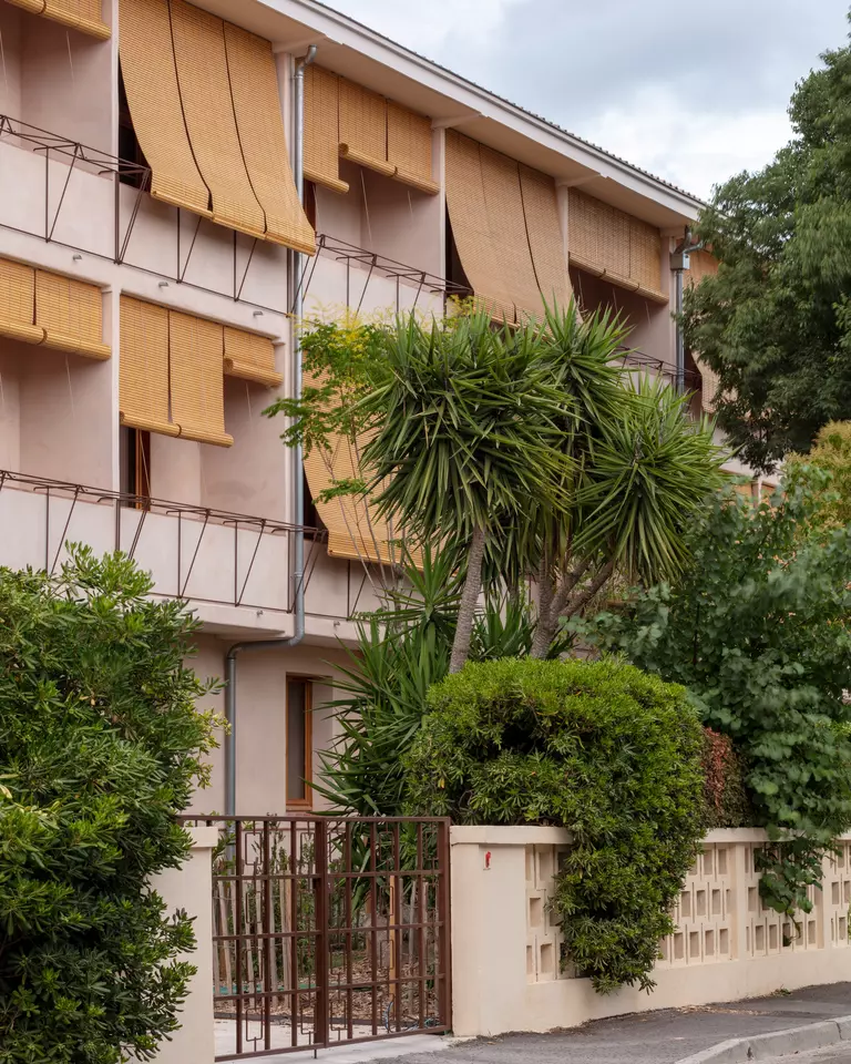 The Paoli project transforms the former Jean-Paoli Clinic, built in 1953 in Arles, France, into temporary accommodation for students and seasonal workers. The renovation preserves the existing structure, retaining features such as ceramic sinks, lamps and flooring, while adding a wooden pavilion on the footprint of a demolished 1970s extension. The 1,320m² building houses 39 rooms, a caretaker's apartment and communal spaces that open onto a garden.